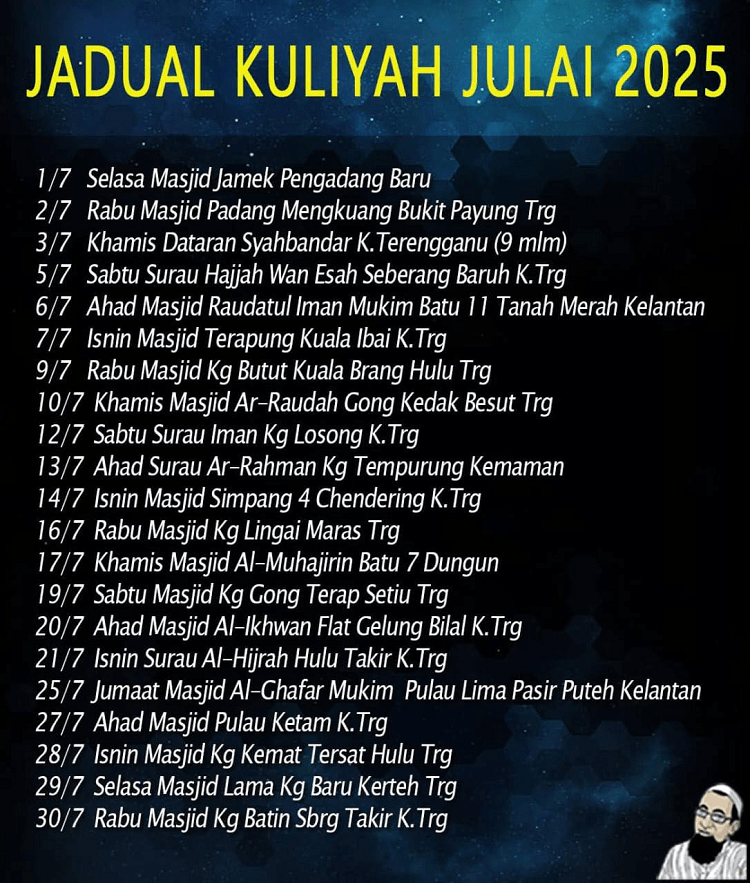Jadual Kuliah Ustaz Azhar Idrus Bulan Julai 2025