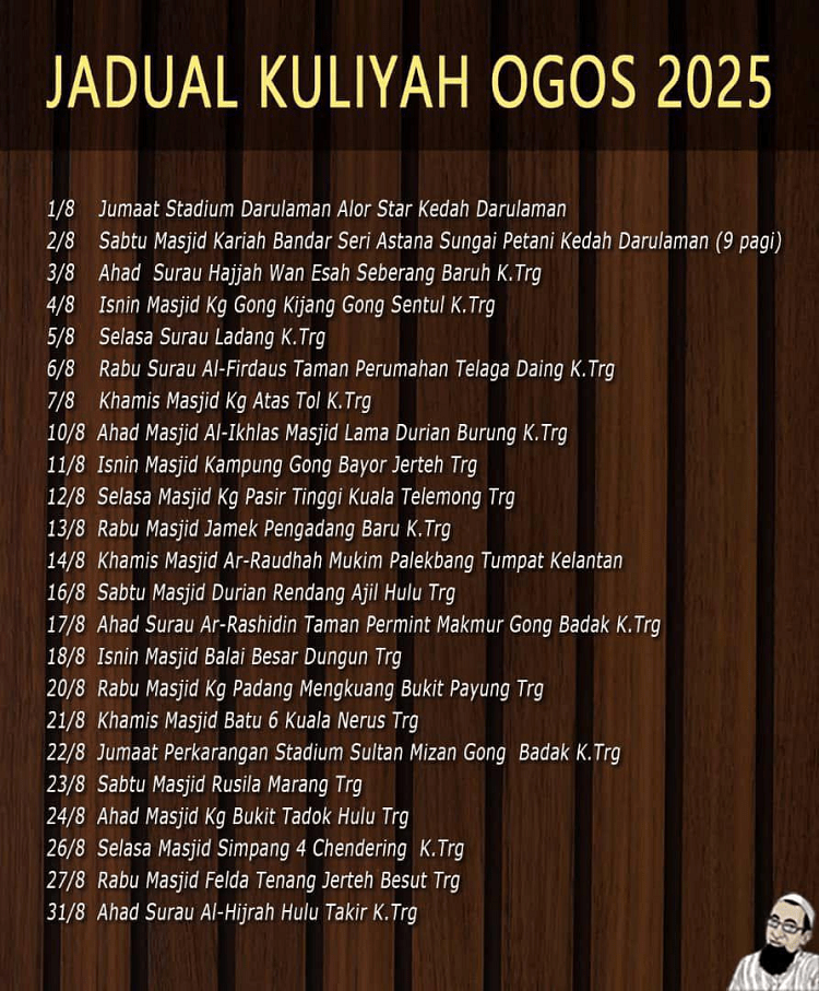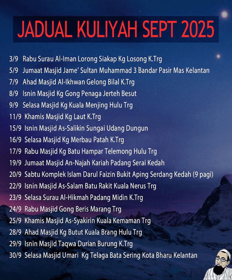 Semoga perkongsian Jadual Kuliah UAI bulan November 2025 ini bermanfaat buat semua. Jangan lepaskan peluang keemasan untuk mengikuti ceramah UAI ini kepada mereka yang tinggal berdekatan dengan tempat lokasi ceramah seperti dikongsikan dalam jadual di atas ini. Jom ramai-ramai ke Kuliah UAI.