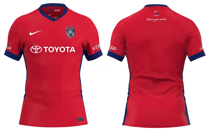 Bahagian belakang jersi turut memaparkan peta Negeri Johor bersama warna bendera negeri dan slogan ‘Move Your World’, selari dengan kempen global penaja utama, Toyota. Logo Toyota Motor sebagai Rakan Mobiliti Rasmi JDT dipaparkan di bahagian hadapan jersi.