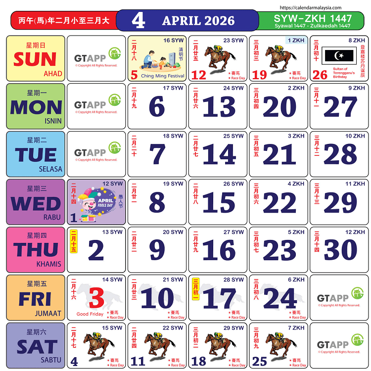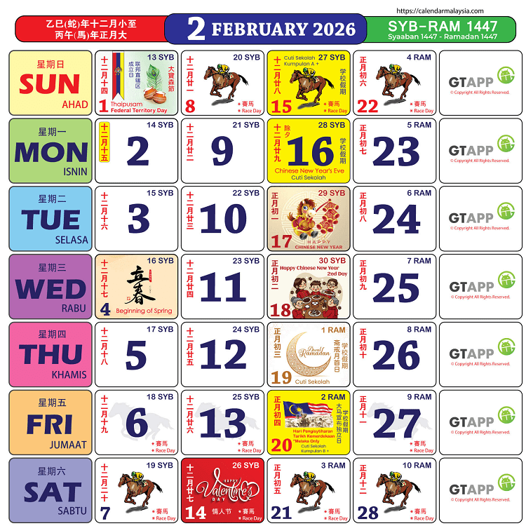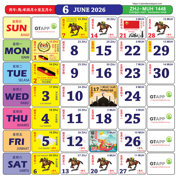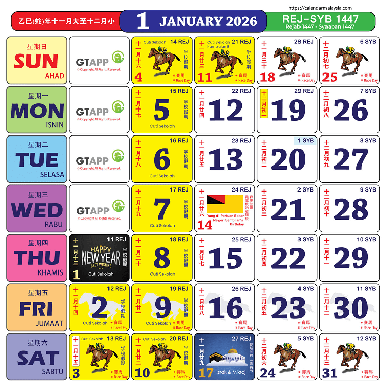 Kalendar Kuda 2026 Malaysia (Senarai Cuti Umum Persekutuan Dan Negeri)