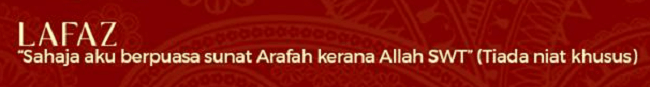 - Sahaja akau berpuasa sunat Arafah kerana Allah Ta’ala (Tiada niat khusus).