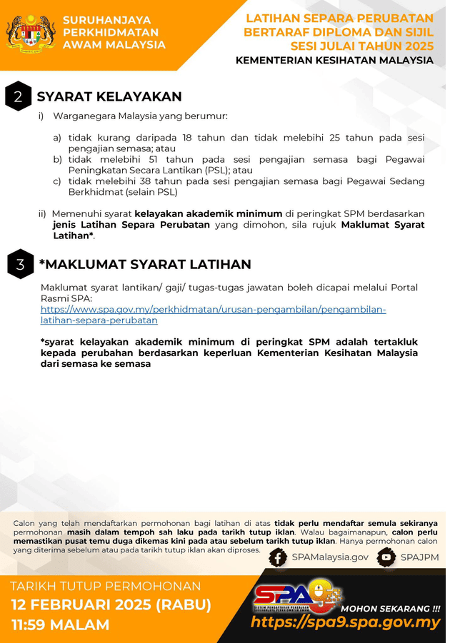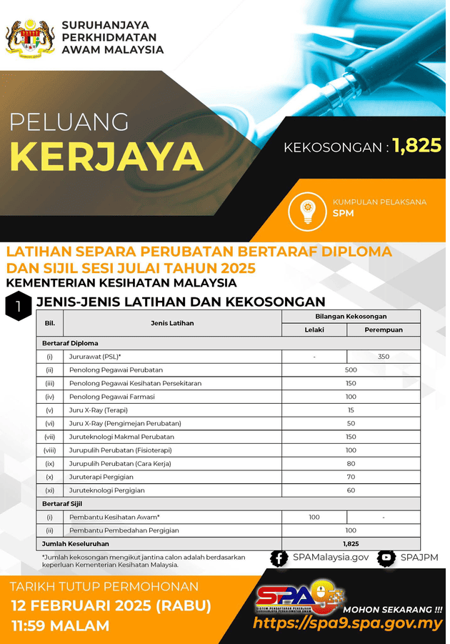 Permohonan Online Latihan Separa Perubatan 2026 Bertaraf Diploma/Sijil (Suruhanjaya Perkhidmatan Awam Malaysia)