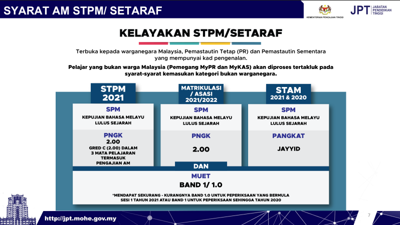 Kategori STPM/ Matrikulasi KPM/ Asasi Sains UM/ ASASIpintar UKM/ Asasi UiTM/ STAM