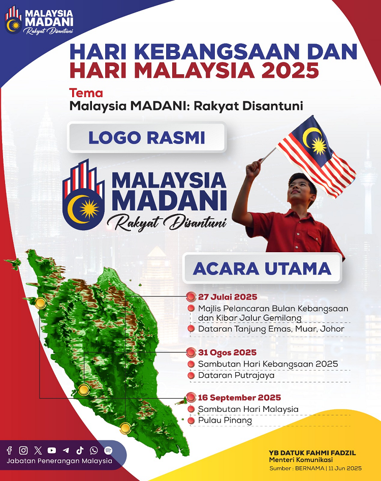 ‘Malaysia Madani : Rakyat Disantuni’ telah dipilih sebagai tema Hari Kebangsaan dan Hari Malaysia (Malaysia Day) tahun 2025 yang diumumkan oleh YB Fahmi Fadzil pada 11 Jun 2025.