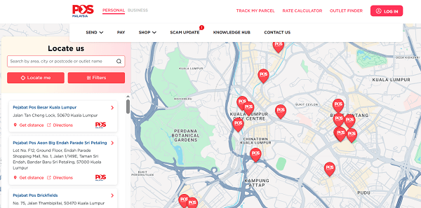 - Di ruangan Locate Us, sila masukkan carian anda samada menggunakan nama kawasan, nama bandar, nombor poskod atau nama outlet